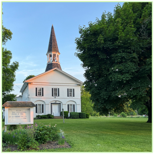 Nestled in the Town of Riga, New York, the First Congregational Church of Riga, also known as “Riga Church” is a Church in the Country with the World at Heart. In 1806, the Church began in the barn of Elihu Church with people gathering there for worship. Construction of the Riga Church building began in 1823, and in 1824 the church building was dedicated. The Riga Church was one of the first church buildings west of the Genesee River. 1